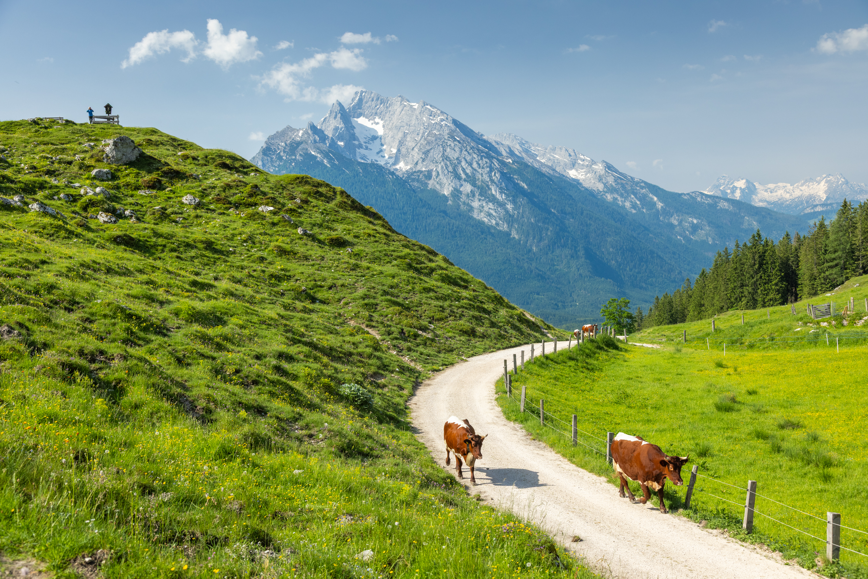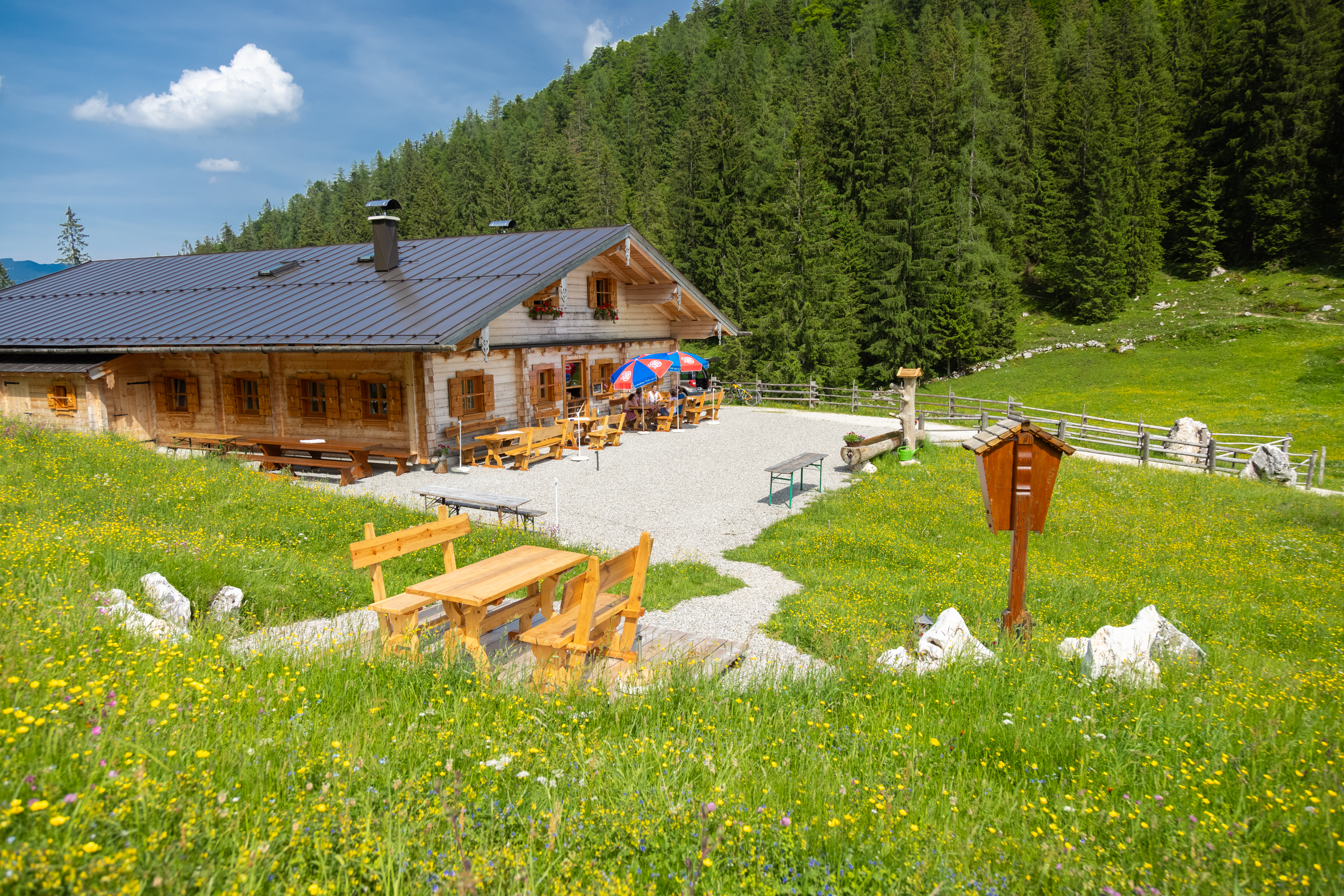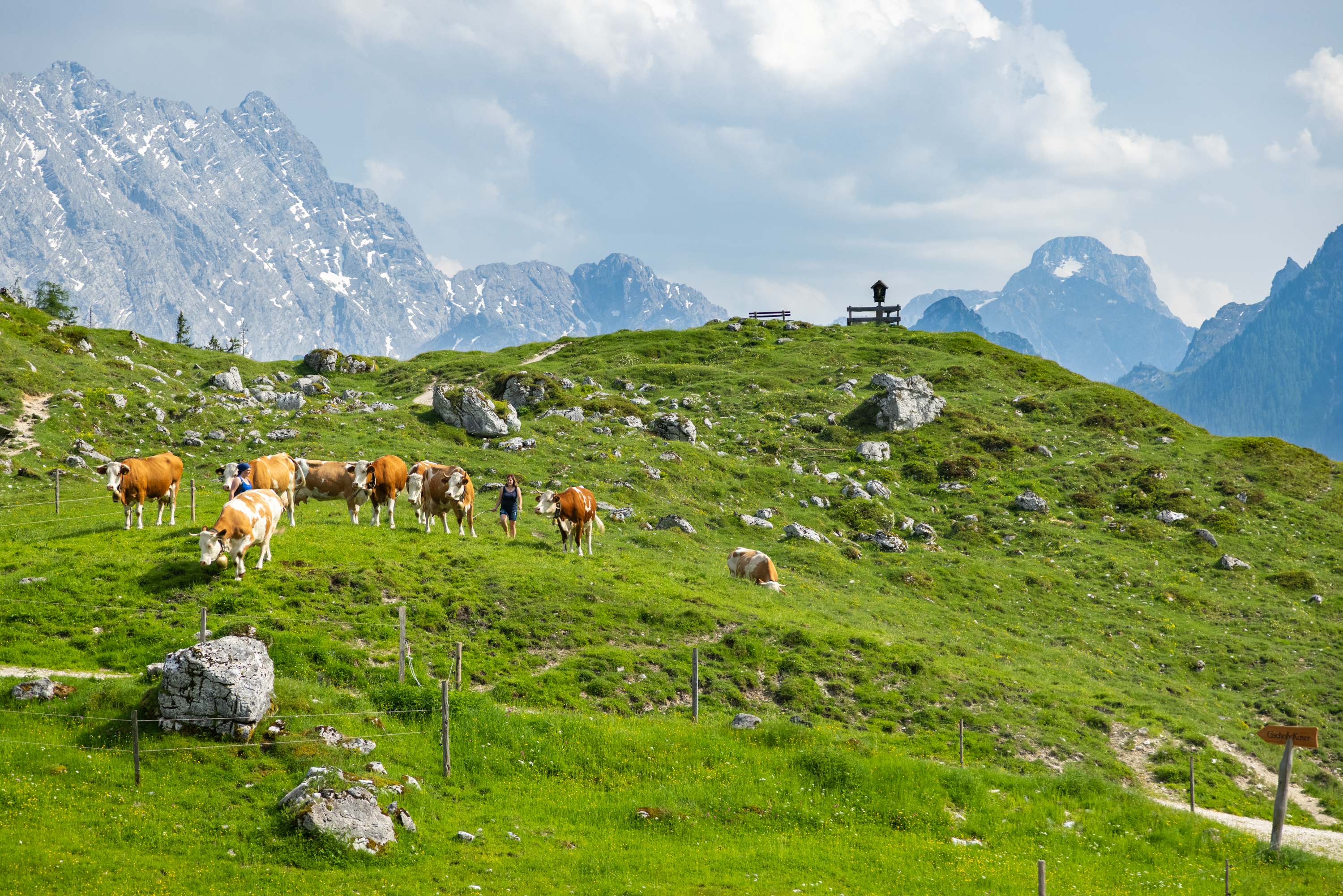 Die Tour zur Mordaualm ist das ganze Jahr über ein erstrebenswertes Ziel. Achten Sie auf einen kleinen, schmalen Pfad, der an den Almhütten vorbeiführt. Wenn Sie diesem kleinen Weg folgen, gelangen Sie auf einen sanften Hügel, auf dem das Almkreuz der Mordaualm steht. Die Aussicht von hier aus ist fantastisch! Der Watzmann und der Hochkalter zeigen ihre Schönheit in voller Pracht.