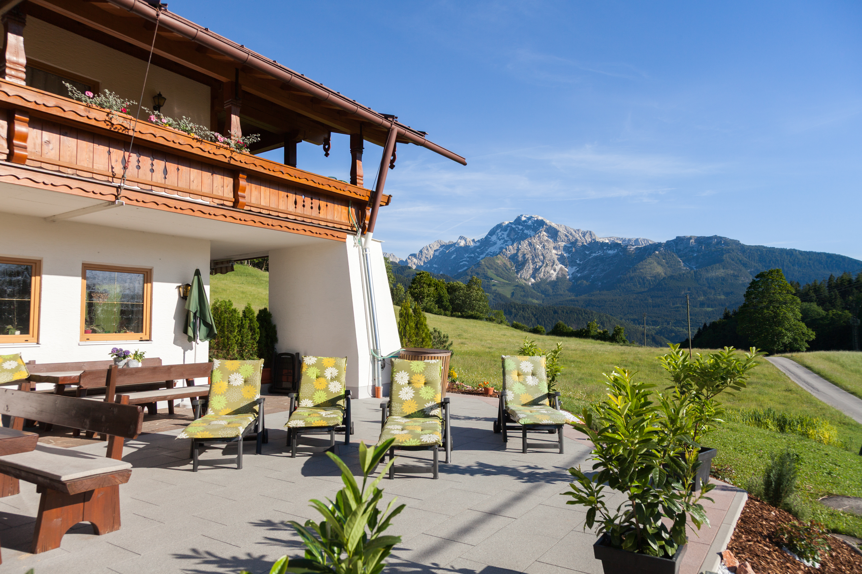 Wohl fühlen und durchatmen. Vom ersten Augenblick Ihrer Ankunft beginnen für Sie die Ferien. Genießen Sie Ihren Urlaub voll Entspannung und Ruhe in unseren modernen Ferienwohnungen. Umrahmt vom Berchtesgadener Gebirgspanorama des Hohen Göll, Untersberg und Kehlstein befindet sich Ihr Urlaubsdomizil auf einem traumhaft sonnigen Hochplateau mit Wiesen und Wälder. Dem Himmel sind Sie hier ein Stück näher.