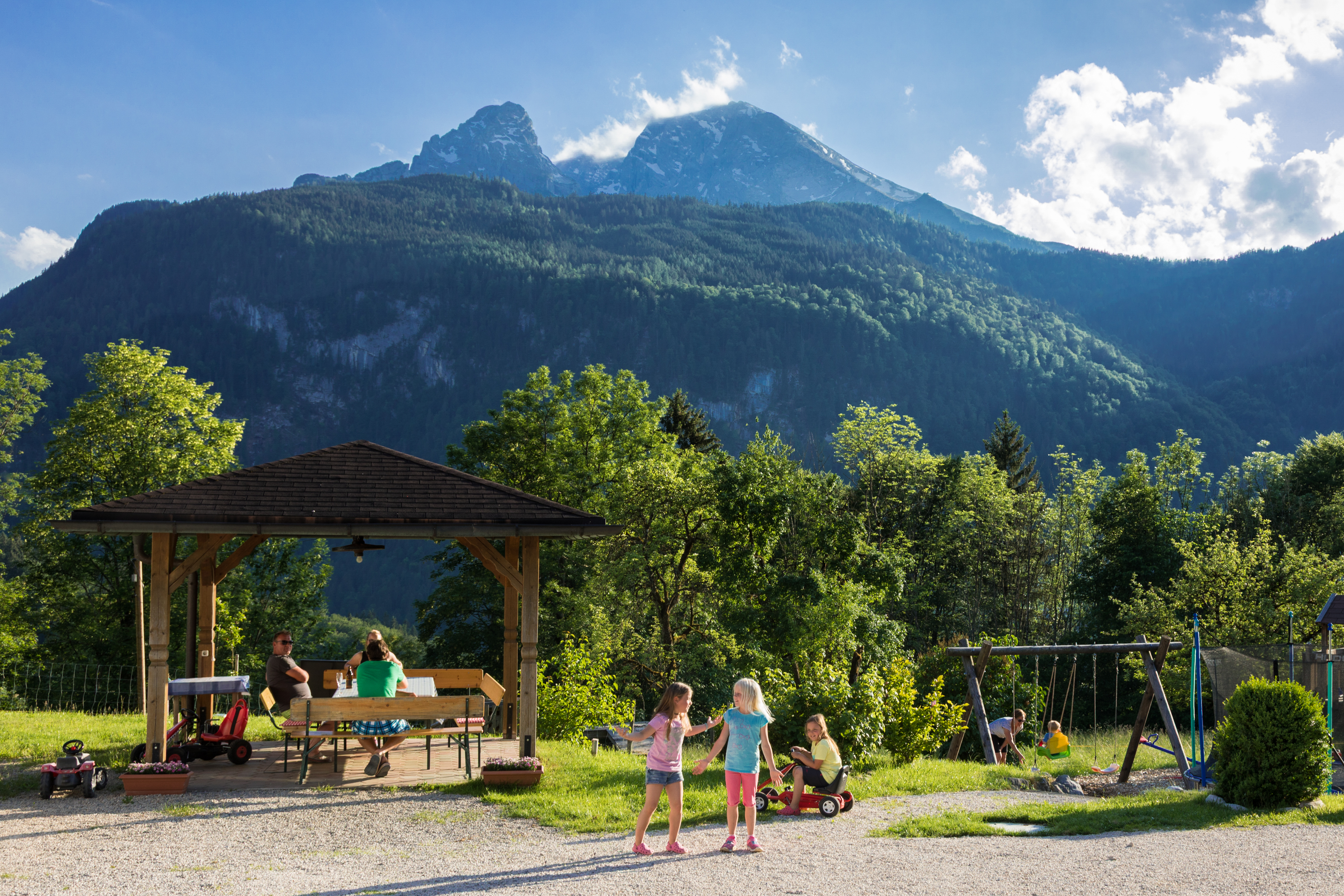 Das Koppensteinlehen bietet freien Bergblick und befindet sich in einer einmaligen Traumlage. Damit es auch unseren kleinen Gästen nicht langweilig wird, haben wir eine Tischtennisplatte, Rutsche, Schaukel, eine große Spielwiese und unsere Hasen, Zwergziegen, Milchkühe und unseren Hund. Gemütliche Stunden können Sie in unserem Holzpavillon mit Grillmöglichkeit verbringen.