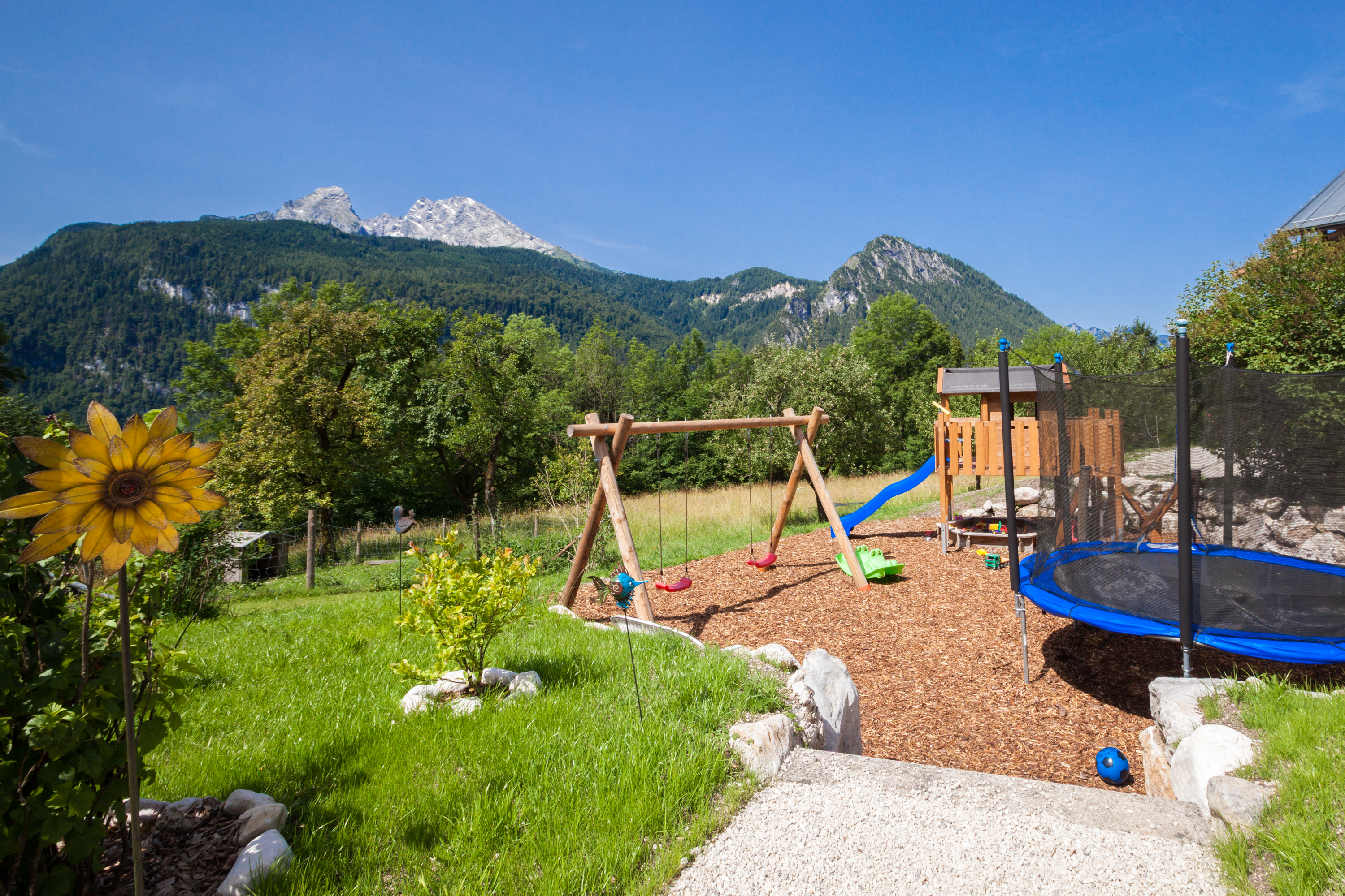 Bergtouren und Wanderungen in den Nationalpark sind von uns aus ohne Auto möglich. Im Winter ist unsere große Wiese eine tolle Rodelbahn und der Jenner bietet sich für Skifahrer an. In wenigen Minuten erreichen Sie auch die Bob- und Rodelbahn am Königssee.