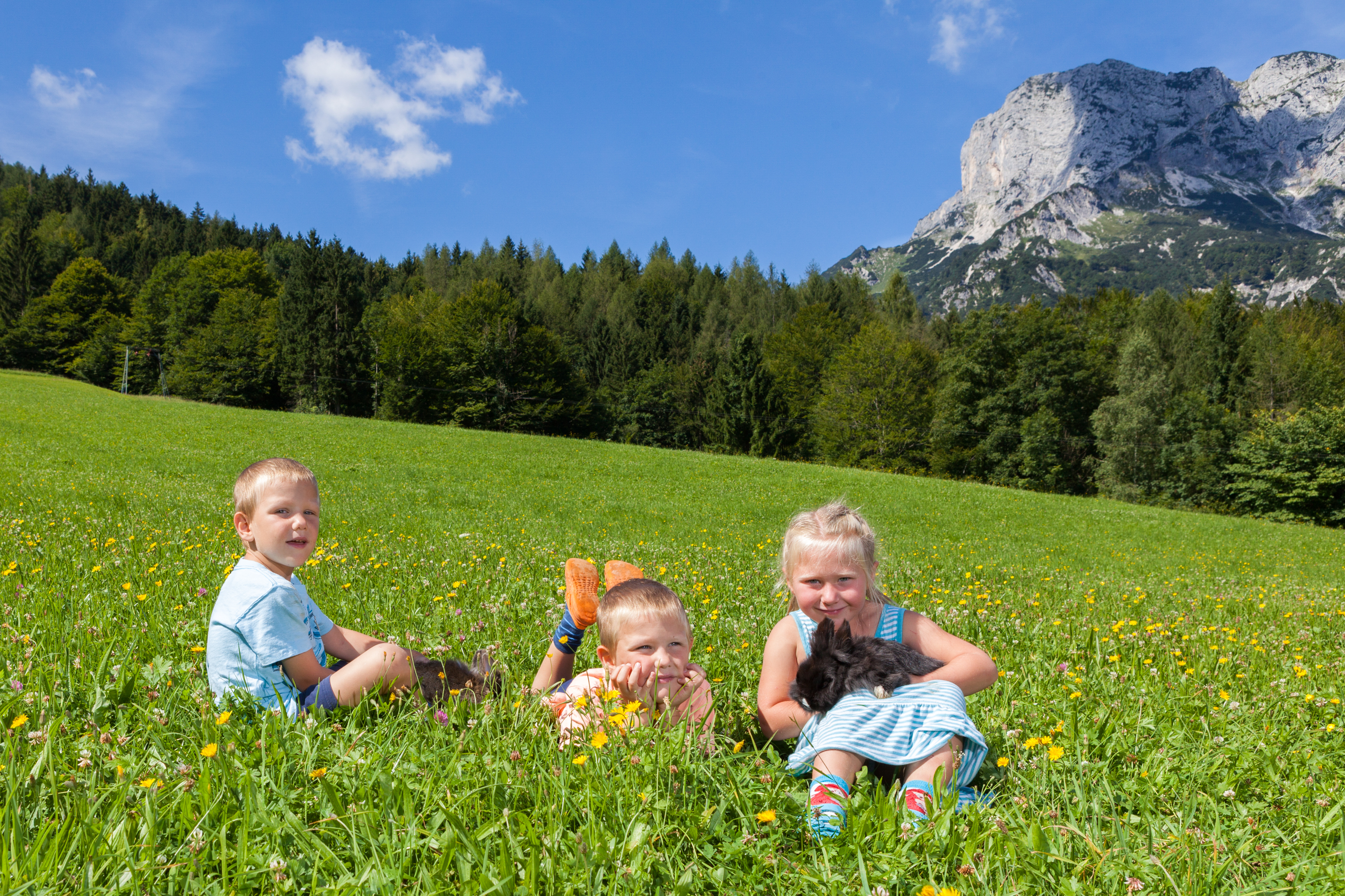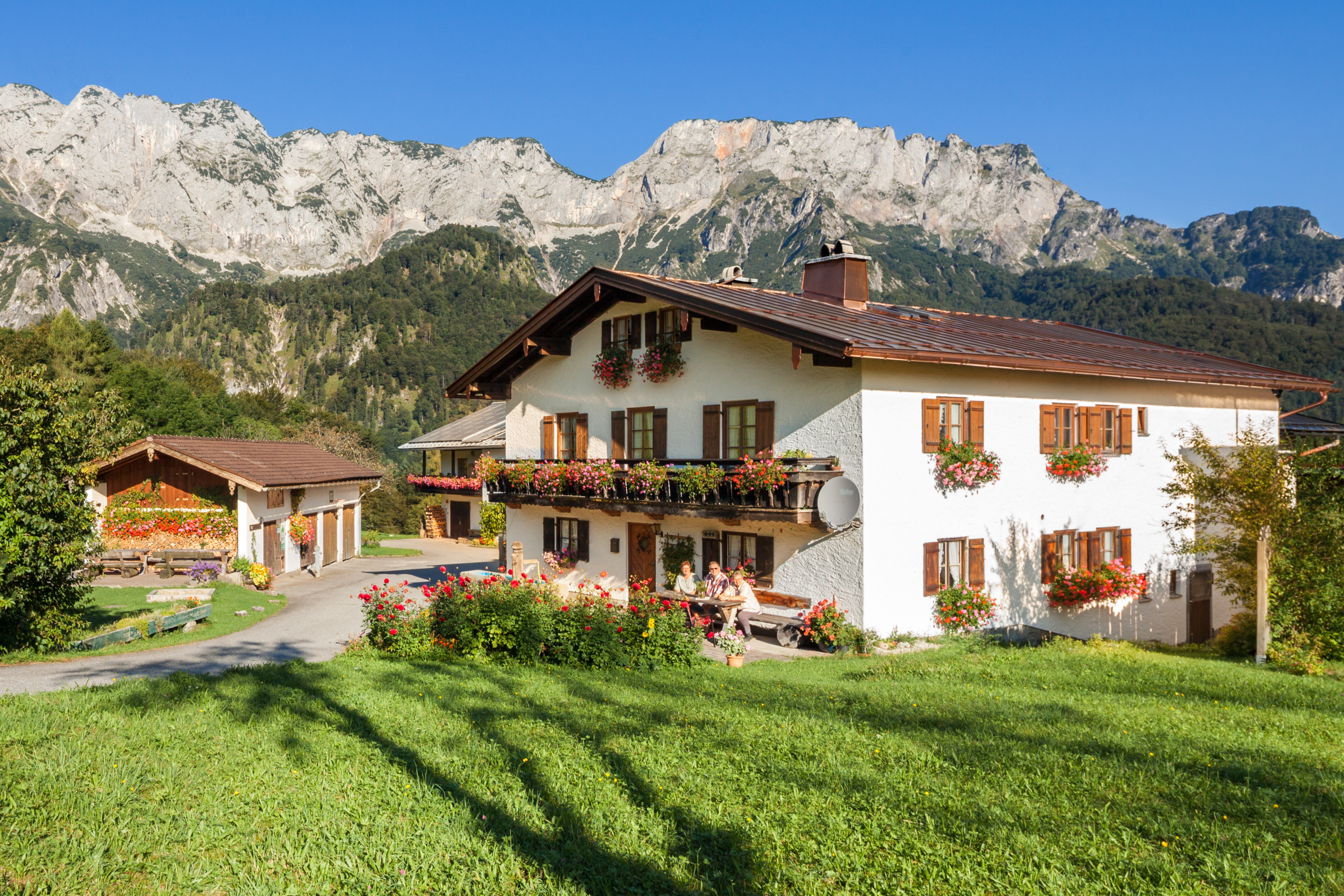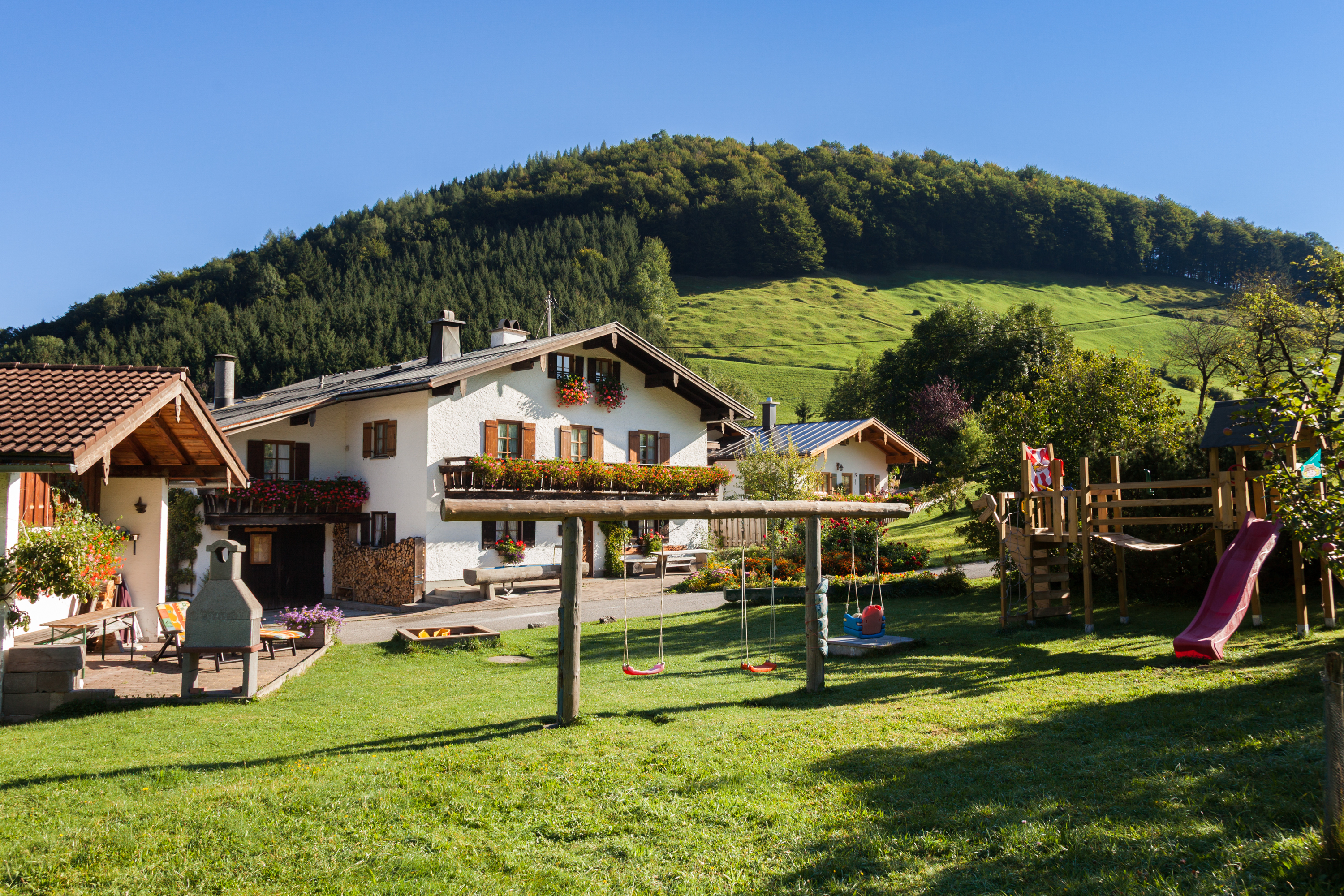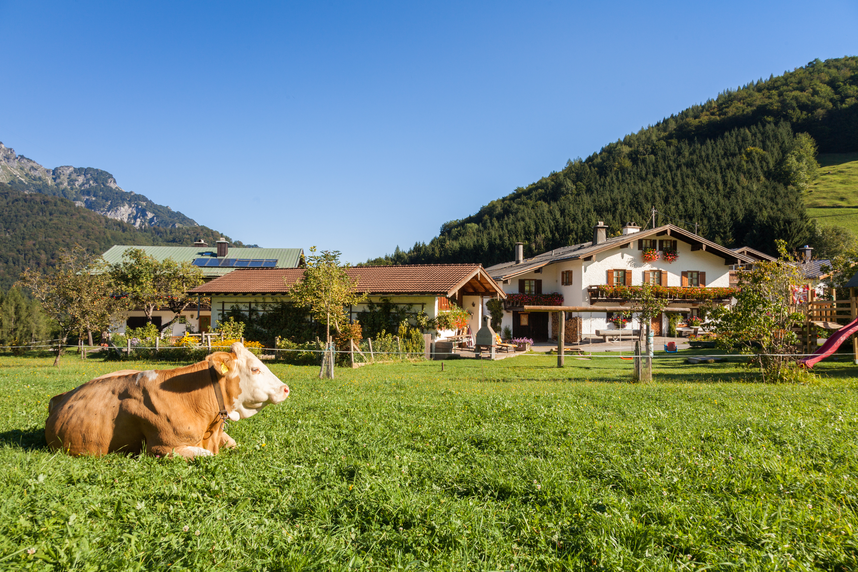 Unser idyllisch gelegener Berghof wird traditionell nach biologischen Richtlinien bewirtschaftet und liegt direkt vor dem imposanten Untersbergmassiv. In unmittelbarer Nähe beginnt der Aufstieg zum Klettersteig Berchtesgadener Hochthron. Auch die Eishöhle Marktschellenberg, Untersbergseilbahn, Almbachklamm sowie die Wallfahrtskirche Ettenberg sind schnell erreichbar. Für Kinder sind unsere Katzen, Hasen und Ziegen geduldige Spielkameraden.