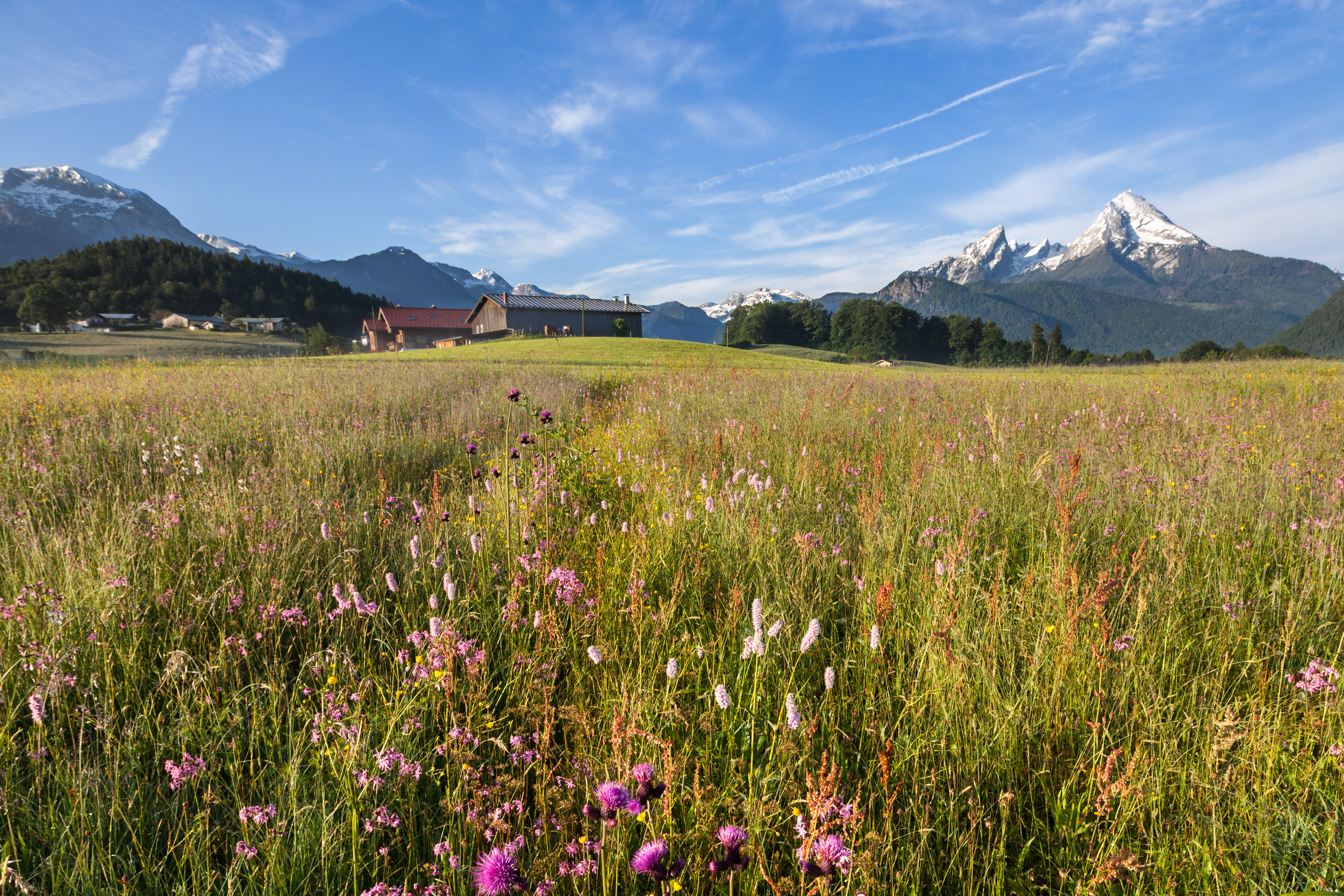 Umrahmt vom einzigartigen Bergpanorama der Berchtesgadener Alpen liegt unser Bauernhof inmitten saftiger grüner Wiesen. Die idyllische und herrliche Umgebung ist wie geschaffen, für einen erholsamen Urlaub.