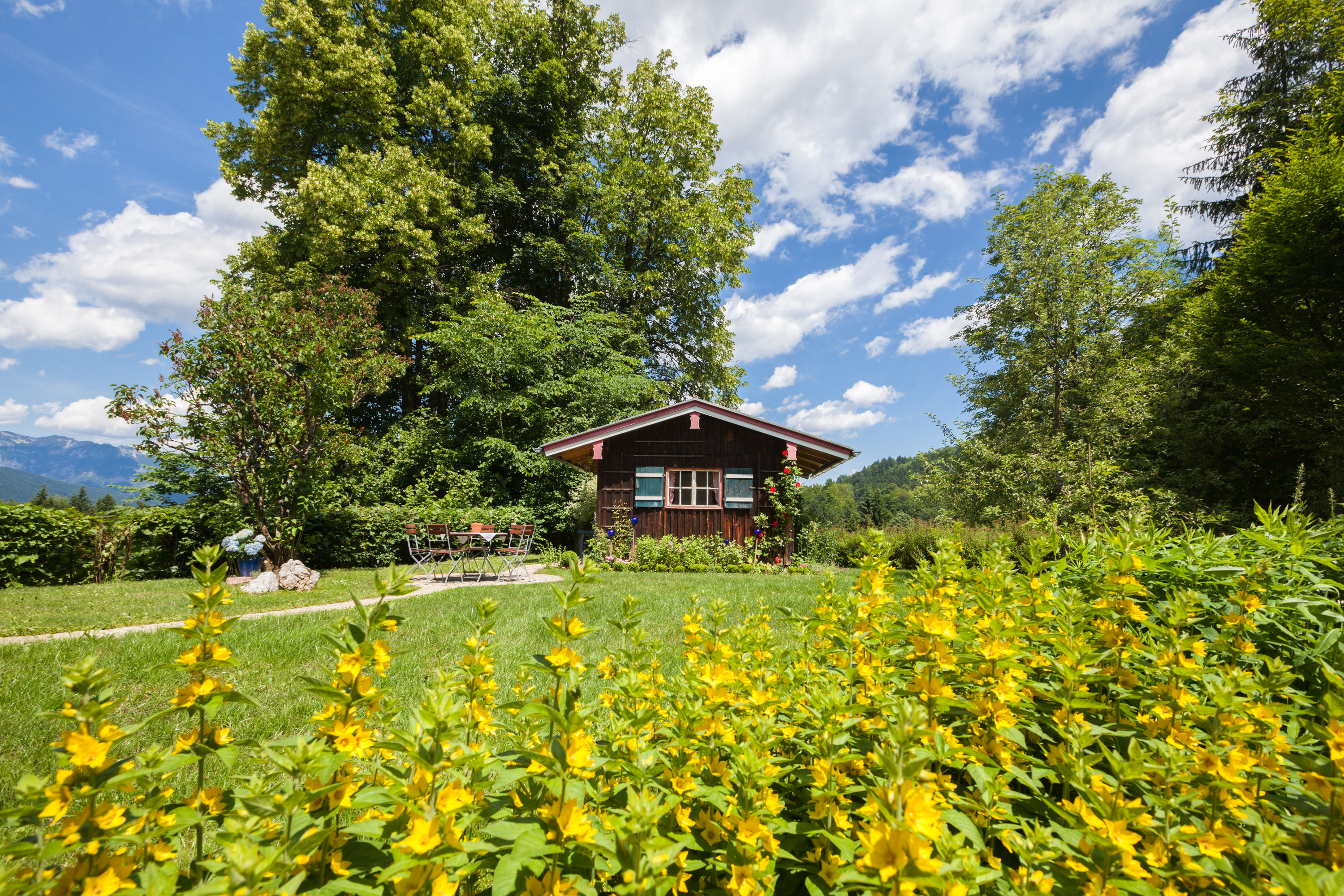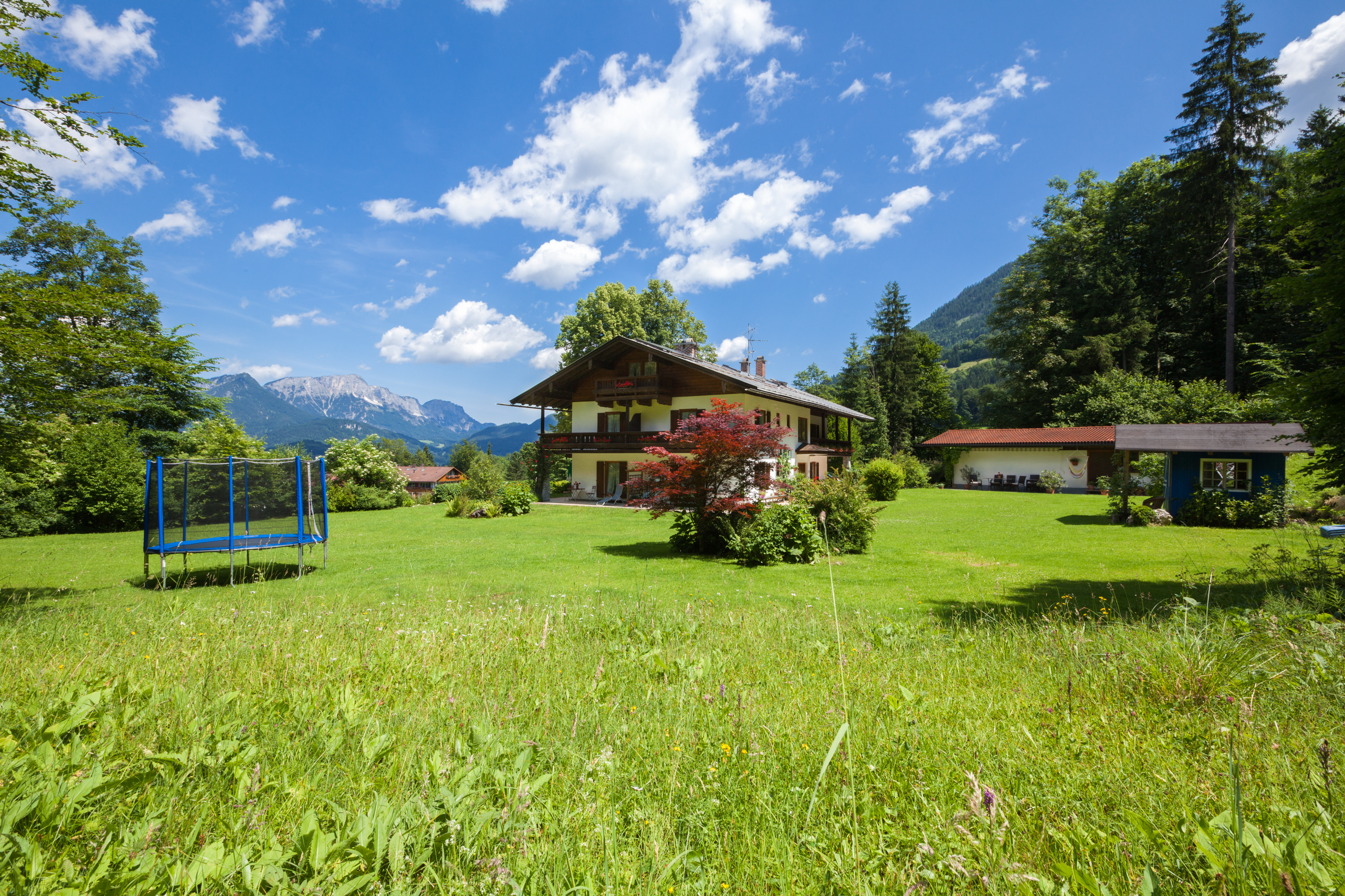 Von unserem Haus blicken Sie direkt auf das imposante Massiv des Untersberges. In unserem großen Garten sind ausreichend Liegen vorhanden. Aufgrund unserer Nähe zur Jennerbahn Talstation sind wir im Winter ein idealer Ausgangspunkt für Wintersportler.