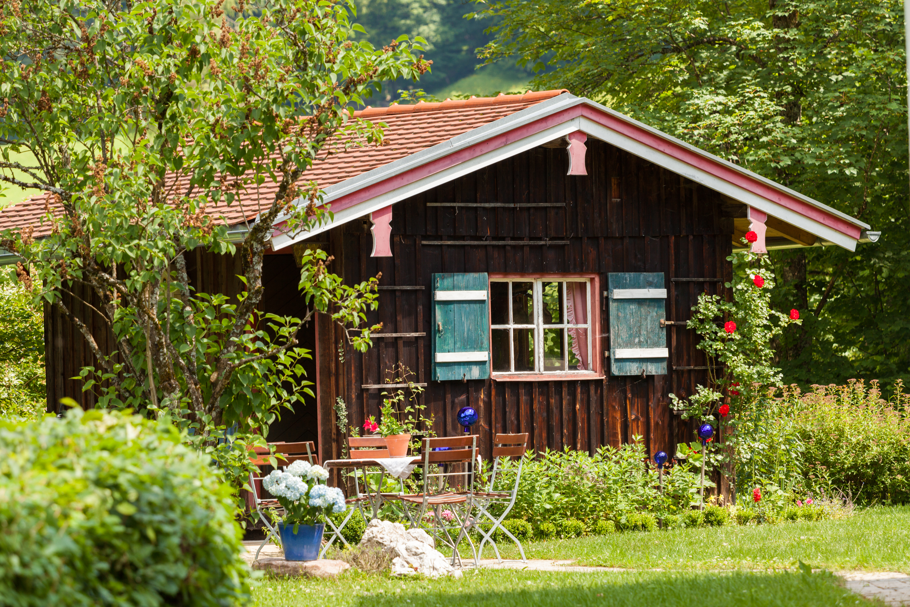 Unsere geräumigen und hellen Zimmer verfügen über eine Terrasse oder einen möblierten Balkon und sind im Landhausstil mit viel Liebe zum Detail eingerichtet.